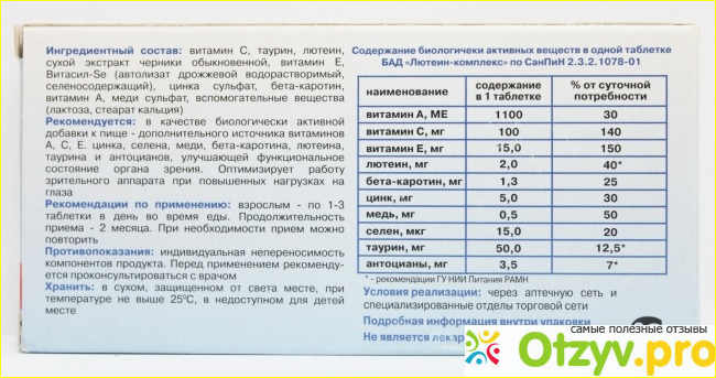 Так как мне Лютеин Комплекс назначил врач, а не реклама, то отношусь к препарату положительно, тем более при заболеваниях глаз профилактика просто необходима. Если прочтете инструкцию, то станет ясно, насколько этот препарат полезен. Я витаминам доверяю, так как понимаю, что они не рассчитаны на видимый эффект, как обезболивающее, например, а служат для того, чтобы нам не пришлось обращаться уже к серьезным лекарствам.