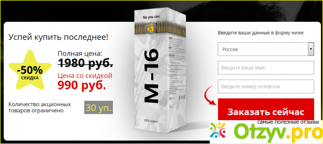 Одна упаковка спрея М16 обойдется вам за 990 рублей, заказать средство вы можете только на официальном сайте, между прочим сейчас его продают с довольно шикарной скидкой. Для заказа препарата вам необходимо заполнить небольшую форму на сайте, после чего ждать звонка оператора. Доставили мне до города Саратов за три рабочих дня.