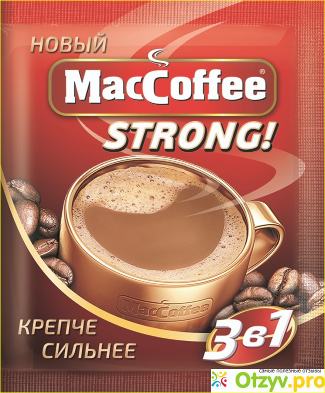 Стоя на кассе магазина, я решила купить растворимый кофе в пакетиках 3 в 1. Обычный черный растворимый кофе я не люблю. А вот кофейные напитки самое то. Меня привлекла этикетка MacCoffee. На ней было написано "Новый MacCoffee strong". Слово "новый" бросилось мне в глаза! Решила попробовать. Также было указано, что кофе "крепче, сильнее".