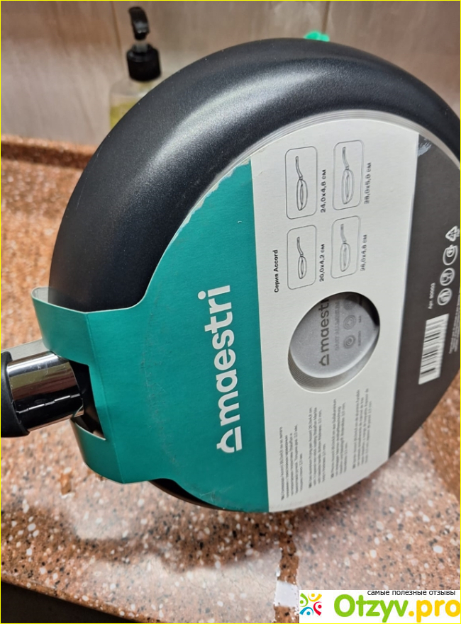 Мой выбор пал на сковороду Maestri, 26 см. В комплекте нет крышки, это пожалуй единственный её минус. Но я в последнее время покупаю сковородки без крышки, потому что у меня уже их на кухне коллекция под любой размер.