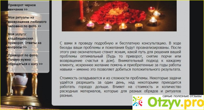 И еще я заметил, что во многих таких отзывах люди хранят тайну ритуала. Т. е. якобы они не должны рассказывать никому об этом, чтобы действие приворота или ритуала не пропало напрасно. Все это довольно странно. И такие отзывы опять же подозрительны.
