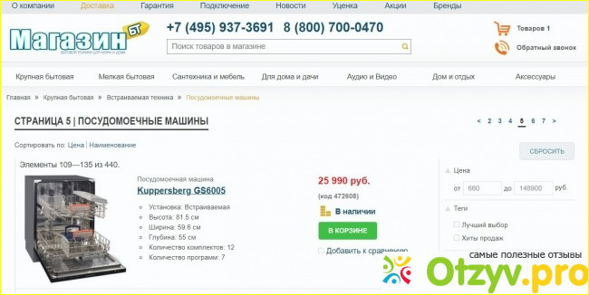 Виктория. В интернет-магазине БТ, уже несколько бытовых приборов, последний из них была посудомоечная машина. Перед этим заказывали у них холодильник и стиральную машину. Работает очень быстро и удобно, каких лишних проволочек либо задержек. Единственное, когда заказывали холодильник, привезли белого цвета хотя мы заказывали серебристого, хорошо ещё, что обнаружилось это внизу пока его не выгрузили. Заметил муж, когда спустился, чтобы встречать грузчиков. Созвонились с менеджером сразу решила эту проблему нужный нам холодильник именно в серебристом цвете доставили уже спустя день. Какое мелкое недоразумение не повлияло на наше положительное мнение об этом магазине. Всё происходит быстро, выбираешь товар, оформляешь покупку, приходит квитанция, которую оплачиваешь и ждёшь. Доставляют в течение нескольких дней. Правда доставку до квартиры приходится оплачивать, крупногабаритные вещи идут из расценки 100 руб. за этаж. В нашем доме лифта нет, проживаем на четвёртом этаже, соответственно каждый раз платили по 400 руб. за доставку в квартиру. Магазин сам установкой и подключением приборов не занимается, дают бумажку на своих партнеров по подключению, если прибор от этого магазина, то подключатели дают скидку 10%. Нам так подключали стиральную машину и посудомоечную. Нареканий на подключение также нет, всё сделано на совесть и быстро. У них получается неплохой тандем - один продаёт другой подключает). Работой обеих организаций мы вполне довольны.