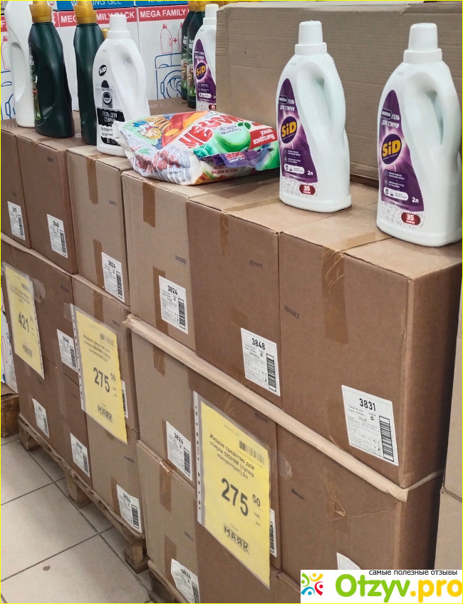 Большая торговая площадь, не отягощенная дизайном. Вместо прилавков в основном паллеты и ящики. Особенно это касается бытовой химии.