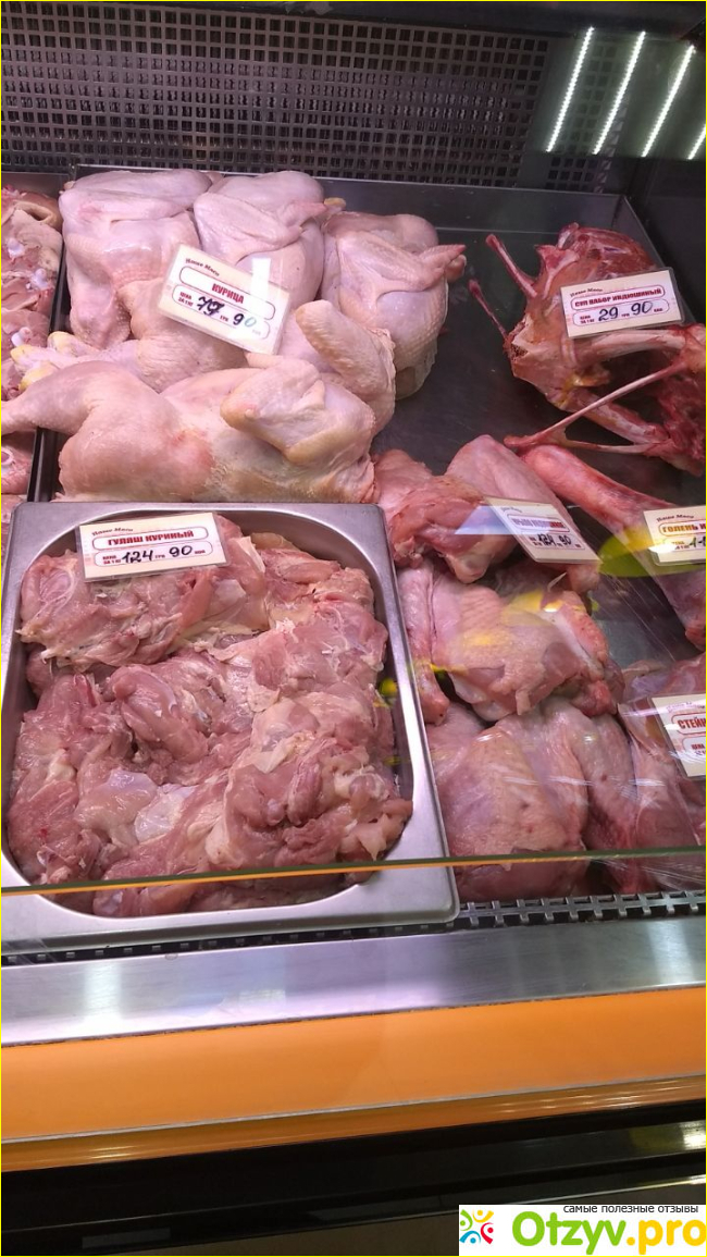 Здесь можно приобрести как целую курицу, так и куриные потроха, стейки, окорочка, крылья, горлышки, печень, сердца на развес.