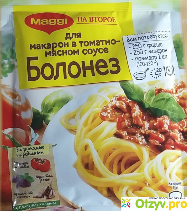Хочу поделиться своими впечатлениями от приготовления "Maggi на второе для макарон в томатно-мясном соусе Болонез". Наткнулась на эту смесь случайно, в отделе с приправами (тогда это была новинка). Попробовали, и сейчас макароны с соусом болонез прочно закрепились в нашем рационе.