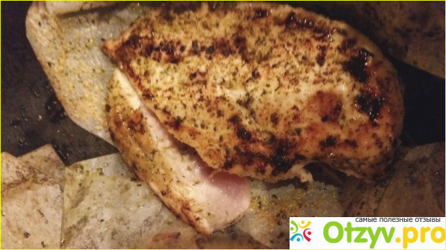 Итак, приступим! Допустим, что куриная грудка у нас есть (кстати, мне приходилось так готовить и филе индейки, тоже хорошо получается). Теперь ее нужно отбить, чтобы толщина каждого кусочка не превышала 2 см. Когда куриная грудка подготовлена, берем пакетик, с помощью ножниц вскрываем его, достаем листочек (он сложен пополам). Раскрываем листочек, кладем на одну половину мясо, и, словно одеялом, прикрываем другой половиной.