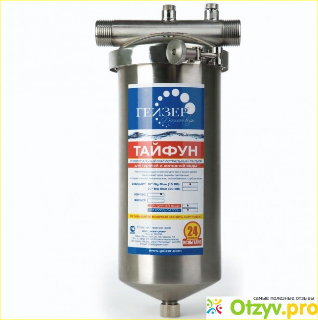 К тому же запах противный иногда появляется. Да и умываться, честно говоря, такой водой неприятно, кожа шелушится. Решили поставить в квартиру еще магистральный фильтр. Не могу сказать, что долго выбирали. Почти сразу взяли Гейзер Тайфун. Во-первых, знаем произодителя давно, во-вторых, металлический корпус многое значит. Затопить соседей не хотелось бы.