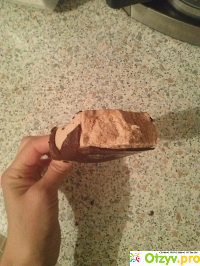 Цвет мороженого кремовое, с коричневыми вкраплениями-полосами. Конечно содержимое немного отличается от того, что изображено на упаковке.