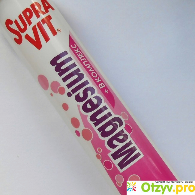 Я приобрела в аптеке шипучие таблетки Magnesium Supra Vit болгарской фирмы Kandy Pharma, но этот препарат оказался отнюдь не лекарством, а биологически активной добавкой к пище, причем одной упаковкой на полный курс лечения не обойдешься. В инструкции написано, что взрослым надо принимать по 1-2 таблетки в день, растворив их в воде. Я стала принимать по 2 таблетки, ведь именно так можно было почти восполнить суточную потребность организма в магнии и витаминах В1, В2 и В6. Что касается витамина В12, то 2 таблетки обеспечивают только треть суточной потребности в этом витамине. И принимать данную биодобавку надо не менее 3-х недель, то есть необходимо выпить содержимое 2-х упаковок Magnesium Supra Vit. Цена на эту БАД в разных аптеках колеблется, но я приобрела ее по минимальной цене - 115 рублей, всего вышло 230 рублей на курс, что в принципе, не так уж и дорого.