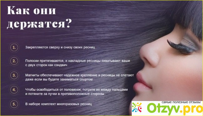 Magnet Lashes – это специальные магнитные накладные ресницы из синтетического волокна, которые фиксируются к натуральным с помощью небольших встроенных магнитных полосок около основания накладки. Для крепления одну накладку надо поднести сверху своих ресниц, другую – снизу. Таким образом, реснички закрепляются и держатся на ресничках максимально крепко и долго. А держатся они до того самого момента, пока я решусь их снять. Главное, прикрепить реснички так, чтобы они были у самого основания ресниц, что поможет закрепить их настолько сильно, чтобы они не спадали. Никаких болезненных ощущений они не вызывают, они совершенно не тяжелые, совершенно не не вредны и не вызывают никакого чувства раздраженности.