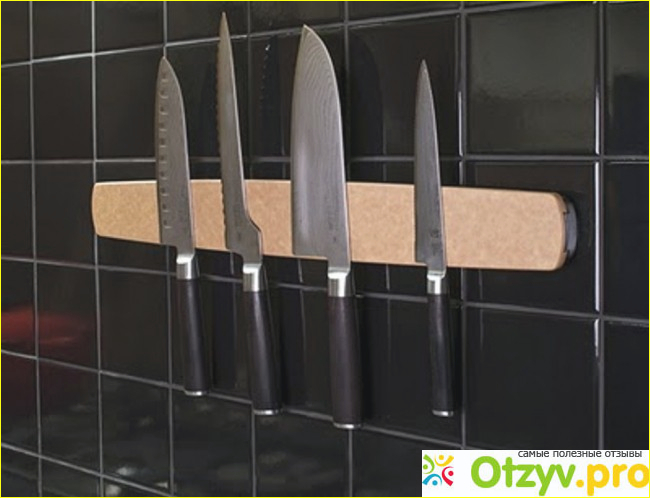 Когда я решила сменить ножи на своей кухне, пошла в магазин, выбрала нужные мне ножи, ну и, конечно же, нужна была подставка для них. Тогда я совсем забыла про существование магнитных держателей. Но спасибо продавцу - консультанту, девушка предложила мне вариант не деревянной, а именно магнитной. Знатее, я очень удивилась что магнитная стоила немного дешевле чем обычные.