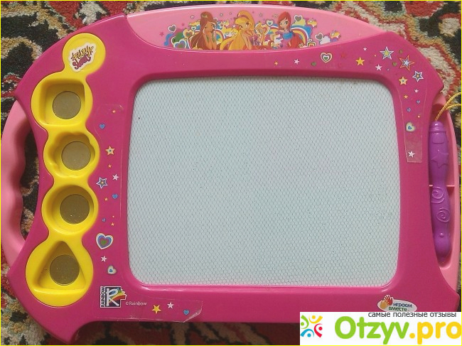 Здравствуйте! Сегодня хотелось бы рассказать о магнитной цветной доске для рисования "Винкс". Купили мы ее около года назад . Выглядела на витрине магазина очень эффектно и так как моя дочь любительница мультфильма про феечек "Винкс" выбор пал на эту доску.