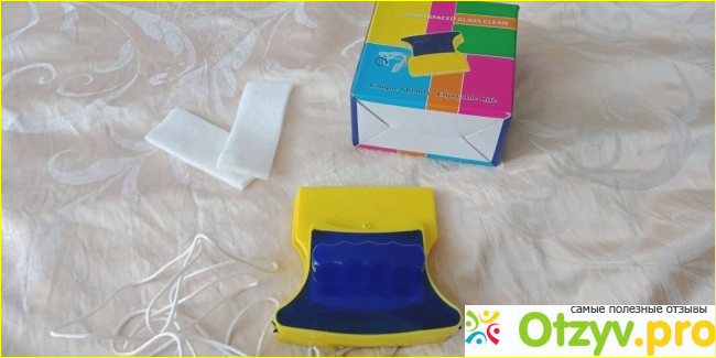 Щетки работают за счет магнитов, которые расположены на двух частях щетки и также они соединены длинным шнуром, на случай, если вдруг половинка, которая на улице соскользнет, не смогла упать на землю.