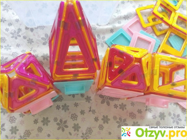 Детали крупные красивые, ровные. Качество конструктора просто супер. Цвета яркие красивые, но не ядовитые. Собирается конструктор легко, магниты быстро примагничиваются и крепко держатся.
