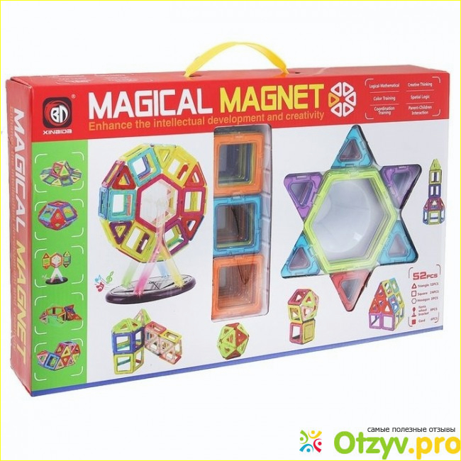 Меджикал Магнет – это уникальный магнитный конструктор, который состоит из деталей – геометрических фигур, в которые встроены мощные магниты. Развивающая игрушка позволяет создавать любые трехмерные и плоские конструкции, стимулируя фантазию малыша.