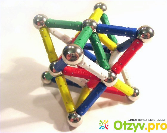 В одном наборе 11 шариков из стали и 21 пластиковая разноцветная палочка, на концах которой магнитики. Из трех наборов у нас вышло 33 шарика и 63 палочки.