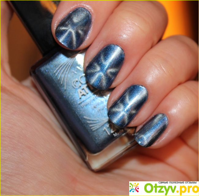 Результат такого действия магнита и частичек достоин хвалебной оды - выглядит красиво, ярко, интересно. Внешне напоминает рисунок на ногте, выполненный блестящим лаком.