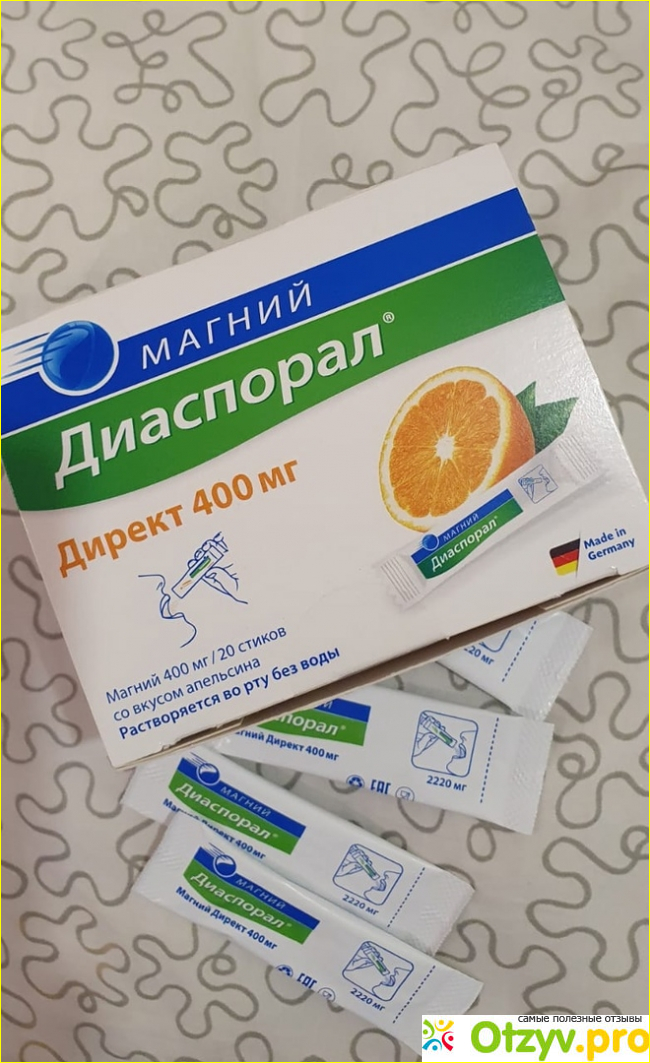 Спустя неделю приема Магний Диаспорал судороги в ногах уменьшились, а к завершению курса, судороги и во все почти меня не беспокоили. Сил прибавилось у меня, сон стал крепче. Я всем советую попробовать Магний Диаспорал Директ в гранулах для рассасывания, потому что его удобно принимать и результат от приема Вы почувствуете сразу!