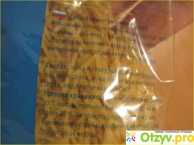 Написано даже, как варить именно эту вермишель. Указан тут также состав, на который я хочу обратить ваше внимание. Тут применяется твердая пшеница высшего сорта, это радует. ГМО не имеется, ну кто бы сомневался! И, конечно же, не обошлось без условий хранения, о которых нам тоже рассказывает производитель.