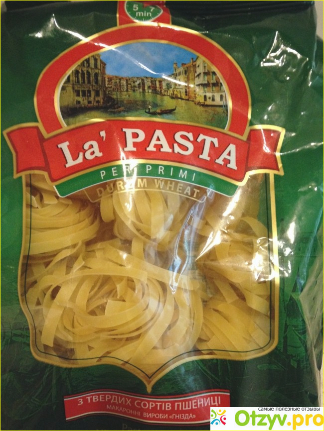 А для супа покупаю макаронные изделия "Гнезда" торговой марки LA Pasta. Вот такая яркая упаковка, в которой 400 грамм, с прозрачным "окошком". Цена в МЕТРО за пакетик таких макарошек 35 (+) гривен, при покупке трех штук получается не много дешевле. Не дешевый именно этот вид макаронных изделий, но они стоят того, чтобы купить и приготовить.