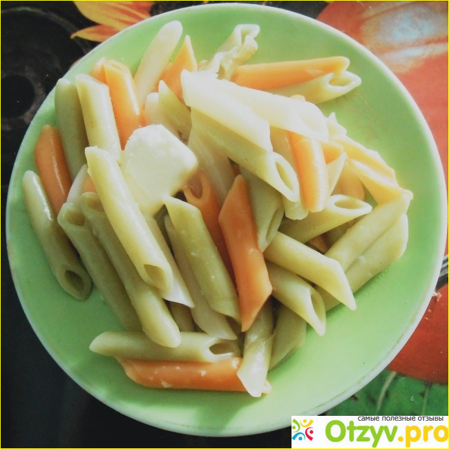 Эти макарончики не теряют своего цвета при варке, поэтому они очень красиво и аппетитно смотрятся на тарелке. По заявлению производителя, а это ОАО "Липецкхлебмакаронпром", красный и зеленый цвета макароны приобрели не благодаря красителям, а потому что в их составе присутствуют томаты и шпинат соответственно. Не скажу, что цветные перья как-то отличаются по вкусу от обычных, ну разве что самую малость, но блюду придают определенную привлекательность. Так что такие макароны можно подавать даже к праздничному столу. Детишкам они особенно нравятся.
