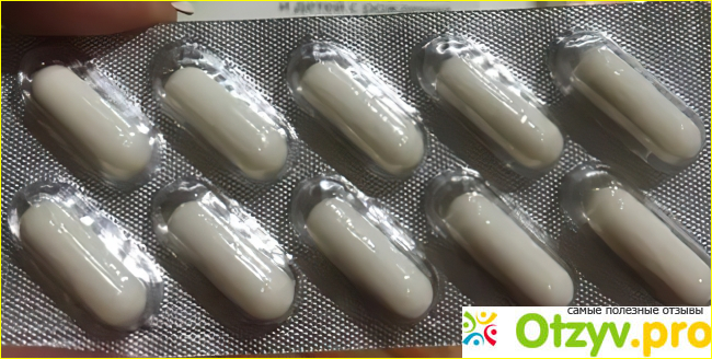Внутри находится прозрачный блистер, через который можно легко рассмотреть капсулы. Они небольшого размера и белые. Проглатываются легко, как и любые желатиновые капсулы. Главное это делать сразу после еды или вовремя запив стаканом с водой.