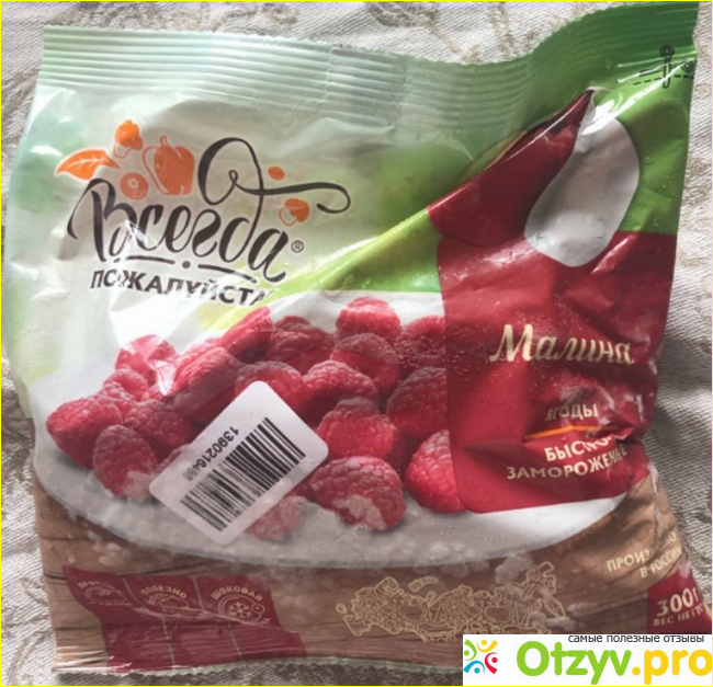 Второй год уже не получается, много работы. Стала покупать джемы. Не то. Сплошные ароматизаторы и вкусовые добавки. Решила брать ягоды быстрой заморозки. Пару раз повезло. Малина была целенькой, вкусной, подходящей для компотов, выпечки, желе. А недавно купила заморозку российского производства от ТМ Всегда пожалуйста.