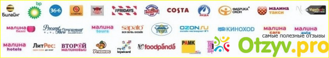 Магазины и компании Три кита, русский стандарт, райфайзен банк, азон, бензовоз, али экспресс, летуаль, спорт мастер, ла мода, Цум, бутик, М видео, оби, юлмат, акушерство, плеер ру, куэлле, фин флер, Адидас, рибок, Самсунг, медиа март, туту ру, хонор, остин, или де боте, дычки сыночки, снежная кородева, связной, Бетховен, читай город, четыре лапы, ого, нотик, лабиринт, Тинькофф, эконика, лакост, виши, красный куб, том тейлер, кино ход, малина такси и много других компаний, которые можно весь отзыв называть и говорить о них. Как понимаете конечно рассчитываемся во многих магазинах реально.