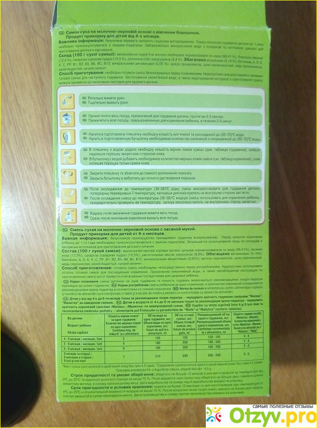 Молочная смесь Малыш производится в Украине из высококачественного молока , завод-производитель - Хорольский завод детского питания Полтавской области уже не одно десятилетие выпускает детское питание и зарекомендовал себя с очень хорошей стороны.В упаковке содержится 350 грамм каши. Данный продукт прикорма идеально подходит для деток с 4-х месяцев, но мы начали есть ее где то с 5-ти месяцев.