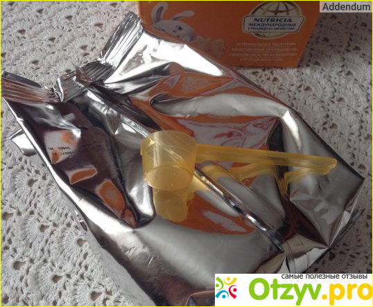 Кто привык к железным круглым или пластмассовым коробкам-упаковкам, то это другое дело... У малютки только картонная коробка! В ней, когда открываешь коробку, есть пакет фольгированный, мерная ложка и непосредственно смесь. Смесь находится в пакете.