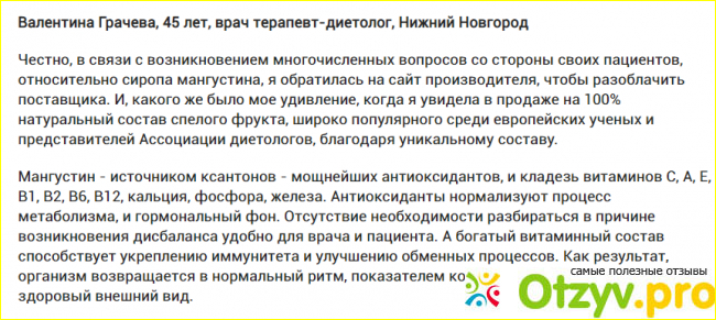 Подводя итоги, что такое жиросжигающий сироп Мангустин? Это гарантия избавления от голода, вы будете меньше есть, приведете аппетит в норму. От чего мы полнеем? От несбалансированного питания, когда целый день перекусываем. Также мы нормализуем гормональный фонд, позаботимся о пищеварительной и эндокринной системе. А еще наполним свое тело необходимыми для нормальной работы веществами.