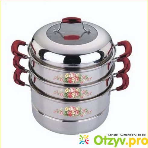 Мантоварка Kelli KL-4219-28 имеет три уровня. Все они снабжены ручками, что очень удобно во время снятия с пара. Ручки декоративные в тон букетам, нанесенным на нержавеющую сталь.