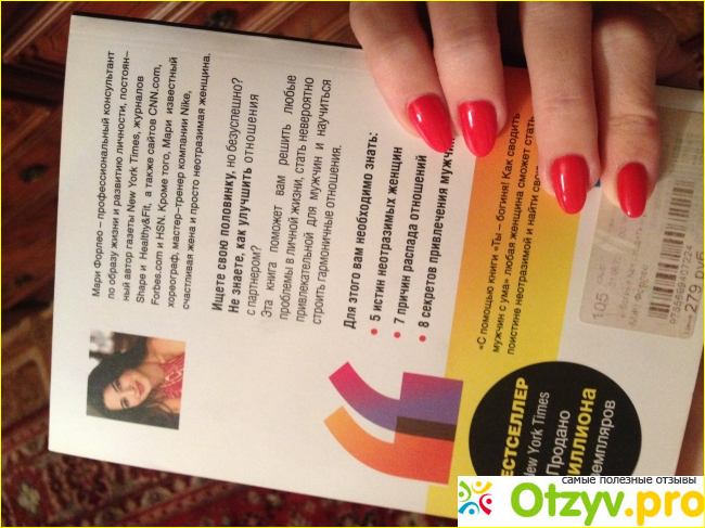 Стоимость довольно недешевая для книги в мягкой обложке (280р). Пришла домой положила на полку так сказать на потом, но вот буквально на днях прочла. Читается легко, я за вечер прочитала, около 260 страниц. Написана довольно таки понятным языком, нету научной и тяжелой терминологии, и данная книга будет довольно проста в усвоении обычному немудреному человеку. Есть много интересных моментов, которые открывают глаза на саму себя, такой взгляд на себя со стороны... и после чего сидишь и думаешь: да неужели я так делала? В самом деле? Вы серьёзно? Такие отрезвляющие разум моменты. Есть хорошие советы в плане поведения в обществе вообще, а не только с мужским полом. Ну и конечно же, для меня есть и противоречивые моменты, с которыми я в корне не согласна (например о том, что брак /отношения не улучшит финансового положения и надеяться на это ошибка - с чем я крайне не согласна, ибо кому как не мужчине кормить свою семью и помогать своей женщине, особенно когда трудно найти работу женщине в наше время). В целом подчерпнуть для себя полезные вещи, ну и не пожалела, что купила.