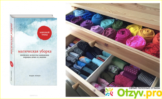 Начинается повествование совершенно просто, я перечитала целую кучу восторженных отзывов об этой книге и ждала от нее множество полезных советов, а весь смысл книги в том, чтобы сворачивать свои вещи рулетиком и укладывать в предназначенное для них место.