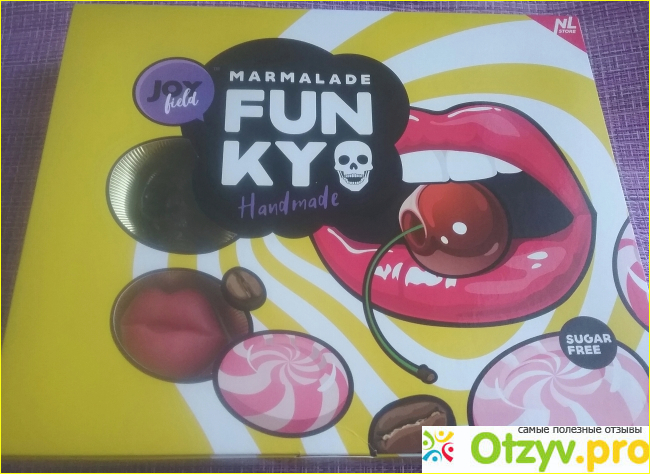 Компания постоянно развивается, радуя нас новыми товарами, одним из которых является мармелад ручной работы "Joyfield Funku". Мармелад расфасован в интересную, красочную и оригинальную коробку желтого цвета,