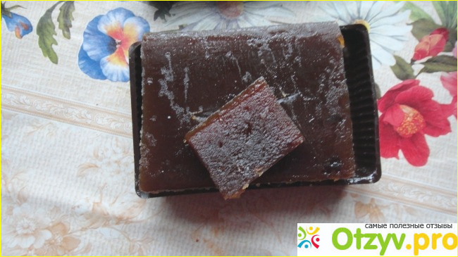 К сожалению меня ждало разочарование. Нет, продукт в общем не плохой, довольно вкусный, но как же его неудобно есть! Это скорее не мармелад, а очень густое повидло, которое надо брать не ложкой, а отрезать кусочки.