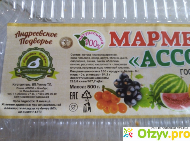 Захотелось мне мармелад купить. Но сладкое моему сыну категорически нельзя, начинается покраснения всякие. Искусственные добавки тоже сразу выдает кожа. Плюс ещё проблемы с пищеварением. И тут чисто случайно на нашем Фермер базаре прохожу мимо их точки. И увидела это фруктовое ассорти. Было в упаковке штук 12 ломтиков, оказалось 500 граммов, по цене 129 рублей.