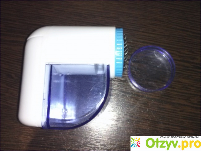 Теперь немного о плюсах данного товара. Компактная машинка бело- голубого цвета для удаления катышков прекрасно помещается в руке. На лезвиях, которые срезают катышки с одежды есть насадка в виде металлической сеточки, что бы удаление было деликатное. Но на многих тканях нельзя сильно надавливать, иначе машинка может порвать ткань. А если все делать аккуратно, то эффект прекрасный. Вещи становятся как новые. Все катышки собираются в специальный прозрачный контейнер в машинке. В целом прекрасная штука за такие деньги.