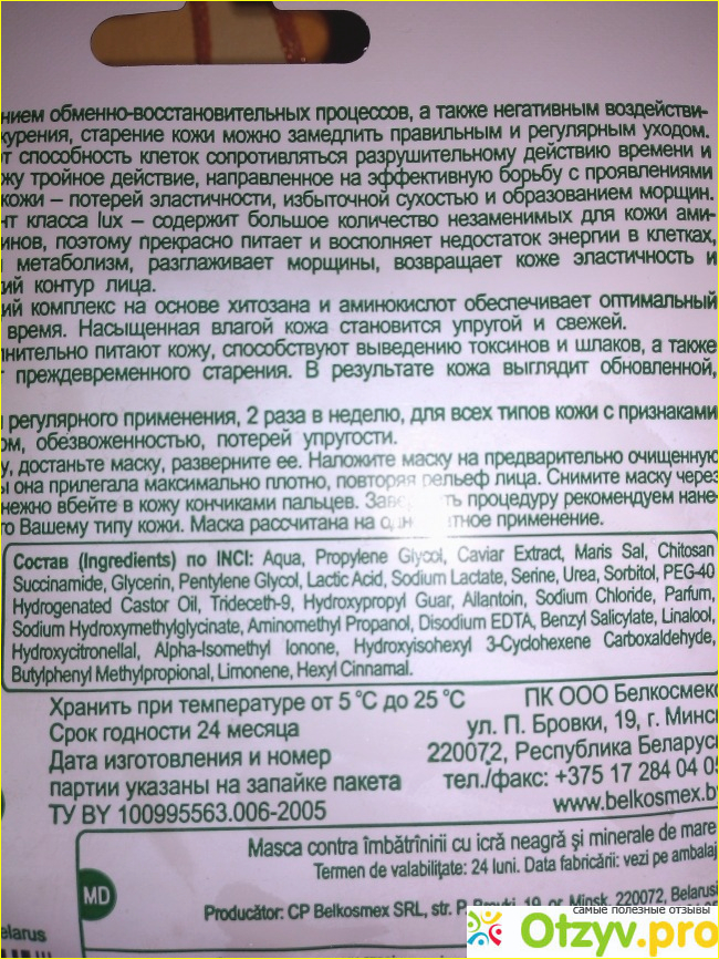 Состав, конечно, не супернатуральный и не очень полезный, но всё же маска действует!