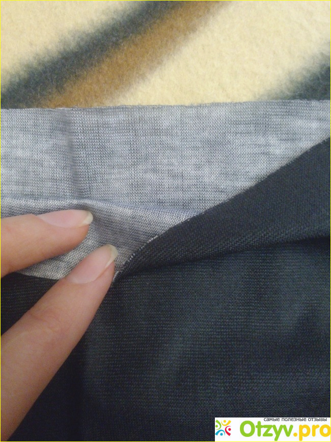 Ткань - тонкая, но эластичная синтетика, очень хорошо растягивается, что обеспечивает легкое одевание через голову.