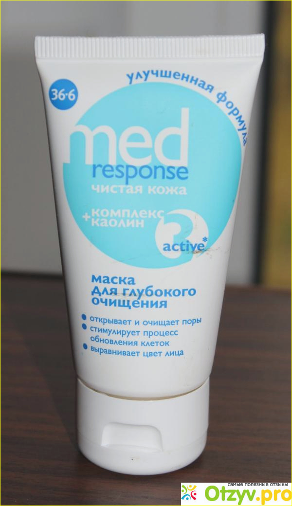 Я так же как и многие выдавливала чёрные точки, но перед этой процедурой обязательно дезинфицирую руки антисептиком и затем протираю антисептиком те места на коже на которых выдавливала. Пробовала разные очищающиеся средства, но глубокого очищения не было. Поры до конца не очищались и очень быстро происходило заполнение пылью, грязью пор на лице. В аптеке 36'6 увидела из серии Med Respone маску глубокого очищения и решила попробовать, стоимость не большая от сто шестидесяти рублей. Маску желательно наносить на чистую кожу, просто умыться мылом а затем нанесите содержимое из тюбика. Маска очень похожа по консистенции на белую глину, рекомендуется наносить два или три раза в неделю на пятнадцать или двадцать минут. Порадовал состав маски, компоненты почти все натуральные:каолин, сера, растительные экстракт, фруктовые кислоты. Если пользоваться маской регулярно то виден результат, от одного применения вряд ли он будет заметно или проявлен.
