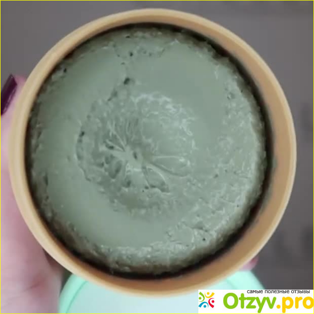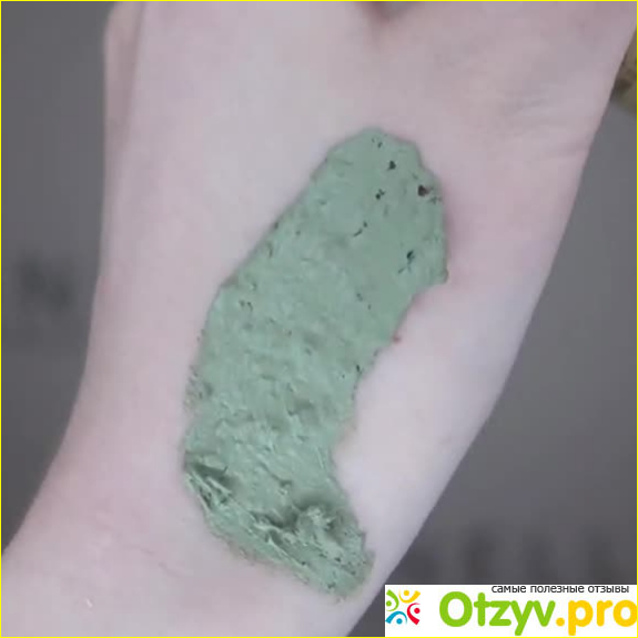 Цвет зеленый, есть вкрапления очень нежных скрабирующих частиц из фасоли и миндаля. Очень нежные, не травмируют кожу.