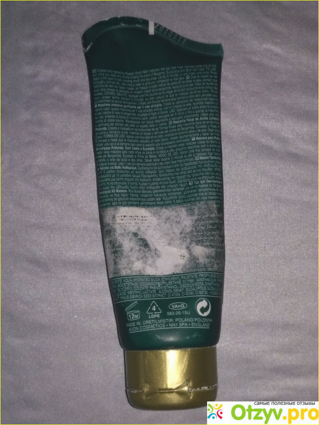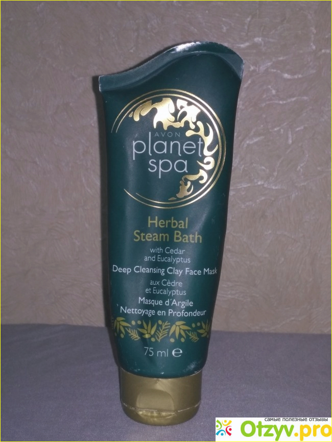 Упаковка красивого темно зеленого цвета. Тюбик из твердого пластика. Эмблема на лицевой стороне упаковки золотого цвета. Надписи в основном все белые, кроме названия - оно желтоватого оттенка. Крышечка плотно закрывается, благодаря этому средство не растекается. Она имеет красивый золотистый оттенок. В целом дизайн привлекательный, приятно держать в руках и иметь такое средство в своей косметичке. Объем маски 75 миллилитров стандартный для серии planet spa от косметической компании avon. В принципе достаточно, я пользуюсь чуть более 5 месяцев. На пару применений еще осталось точно.