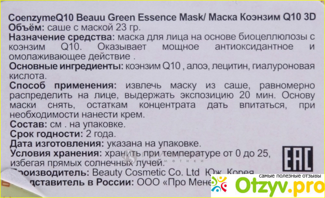 Маска для лица BeauuGreen Коэнзим Q10 обошлась мне всего в 35 рублей. В составе среди активных компонентов можно выделить лицетин, алоэ, коэнзим ку10. Производитель рекомендует применять маску 2-3 раза в неделю, И обещает пользователю гладкую, сияющую кожу, профилактику морщин и увлажнение. Применение совершенно стандартное, как у сотен подобных продуктов. Очистить кожу, нанести, порелаксировать, помассировать лицо с остатками средства и подождать до полного впитывания. Я использовала уже более десяти таких масок, и могу сказать, что результат и накопительный эффект меня радуют.