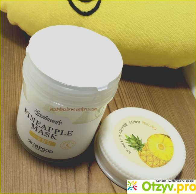 У меня очень сухая кожа. Поэтому мне очень важно сохранять влагу в эпидермисе. Для этого я совершаю множество ступеней ухода. Мне это нравится, так как именно стабильное внимание к себе приносит наилучшие результаты. Эту ананасовую маску я использую пару раз в неделю. Для начала умываю лицо и шею с мягким мылом и с помощью специальной щеточки. Таким образом избавляюсь от ороговевших клеток и подготавливаю кожу к активному действию маски. Она очень приятной, гладкой йогуртовой консистенции. Объем упаковки большой, и банка для меня предполагает обязательное использование шпателя, так как это позволяет защитить средство от проникновения микробов.