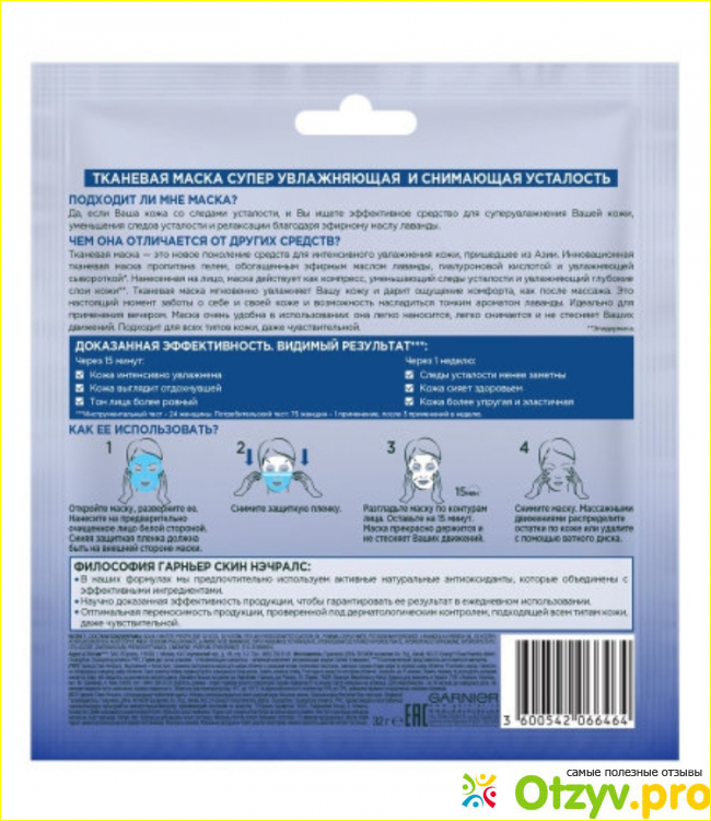 И сейчас будет фотография где будет показан стикер на котором можно прочитать о маски, её состав, способ применения и другие характеристики