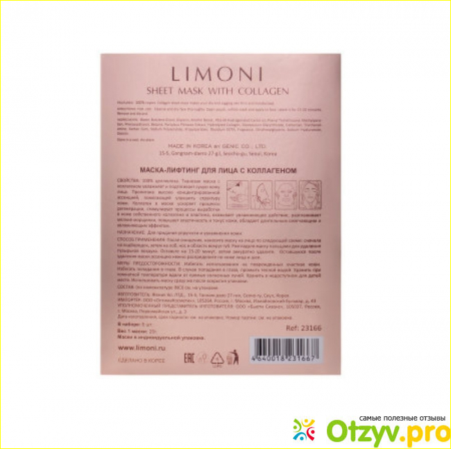 Маска для лица данной фирме представлена в коллекции из несколько различных вариантов они отличаются наполнением данная маска представлена как увлажняющая с коллагеном, отличаются они друг от друга цветом шапочки, а с чем именно маска может понять сразу как посмотрите на внешнюю сторону там возле шапки написаны основные компоненты,