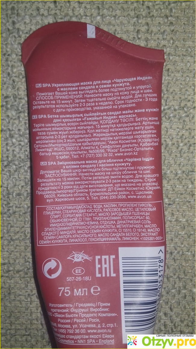 Сегодня я хочу рассказать про Укрепляющую маску для лица с маслами сандала и семян кунжута Чарующая Индия от такого известного и разрекламированного производителя, как Avon, из серии Планета SPA. Маску такую купила, у распространителя данной косметики, выбирала ее по каталогу, а написать решила потому, что она понравилась мне своим великолепным действием и преобразила мою кожу. Итак, цена всего 168 рублей, объем тубы 75 мл, конечно, это не много, тем более, что расходуется маска не экономично, такой тубы мне хватает на шесть-семь применений.