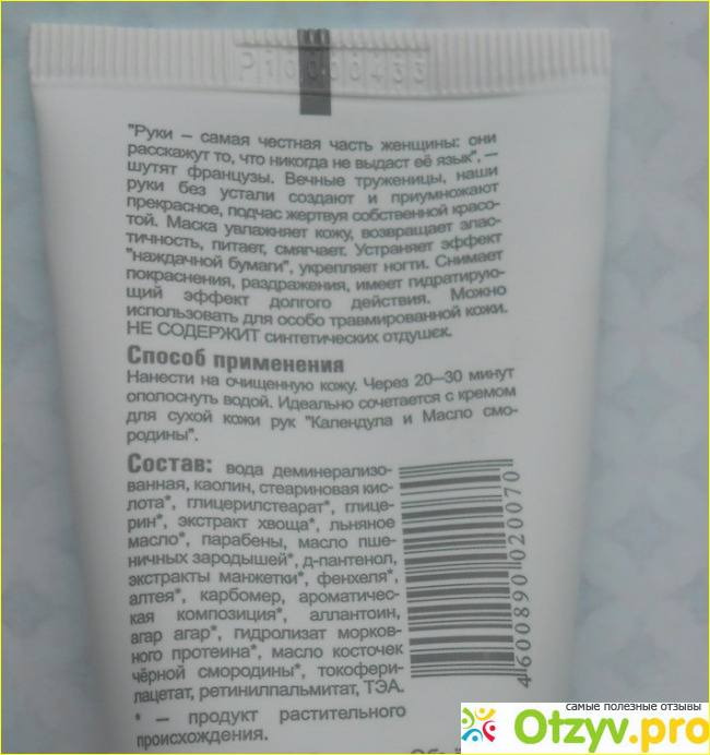 Что, по мнению производителей, делает данное средство? Увлажняет кожу, питает ее, смягчает, устраняет эффект «наждачной бумаги», укрепляет даже ногти, снимает покраснения, раздражения и все это действует продолжительно. Поскольку я постоянно использую различные крема, то не уверена, что первые пять вышеперечисленных пунктов реализовались именно после использования маски «грин мама», так как моя кожа до применения не была сухой или не увлажненной. Однако я заметила, что после процедуры с данным продуктом кожа стала более стрессоустойчива к различным химическим воздействиям. Что касается укрепления ногтей, то я использую тонну всего, что мои ноготки итак в очень хорошем состоянии, поэтому не могу отметить, что именно это средство способствовало благоприятному воздействию на ногтевую пластину.