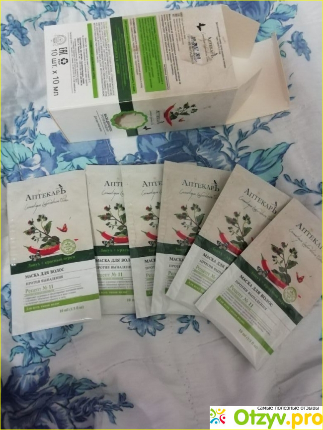 Уже через три использования средством я заметила результат. Мои волосы стали выпадать гораздо меньше. Чем больше пользовалась тем меньше выпадают. Когда все десять пакетиков закончились, то я дала передохнуть своим волосам от процедуры. Не надолго, иначе положительный результат будет не долгим. Тем временем узнала у коллеги где она приобрела "Аптекаря". Оказалось, что заказала через интернет, но его можно купить в аптеке. Есть несколько видов таким масочек, но я вновь решила взять "Лопух+красный перец". Сейчас вновь использую маску.